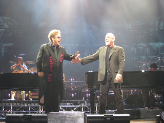 By the end of the show Elton had gone through at least two wardrobe changes while Billy had played three instruments including my all-time favorite, the harmonica. Impressive but not surprising for two guys who have been banging on pianos most of their lives – one of which who has sold more than 250 million records (Elton) and the other who is the sixth best-selling recording artist and the third best-selling solo artist in the United States (Billy). Take that James Blunt!